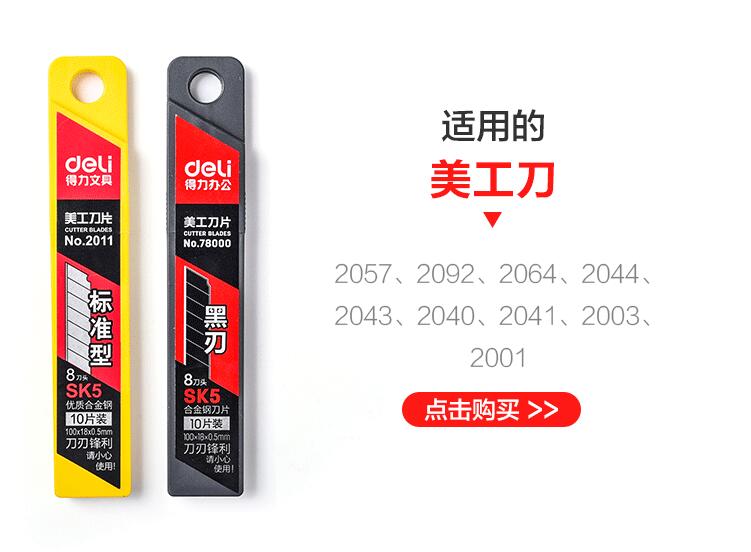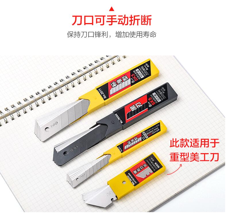 得力美工刀片 標(biāo)準(zhǔn)型8盒(80片) 用30度雕刻貼膜專用墻紙壁紙大碼梯形刀片切紙80片裝批發(fā)
